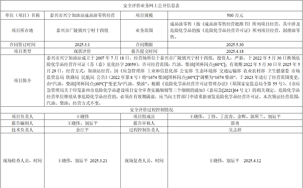 泰兴市兴宁加油站成品油零售经营项目安全评价报告