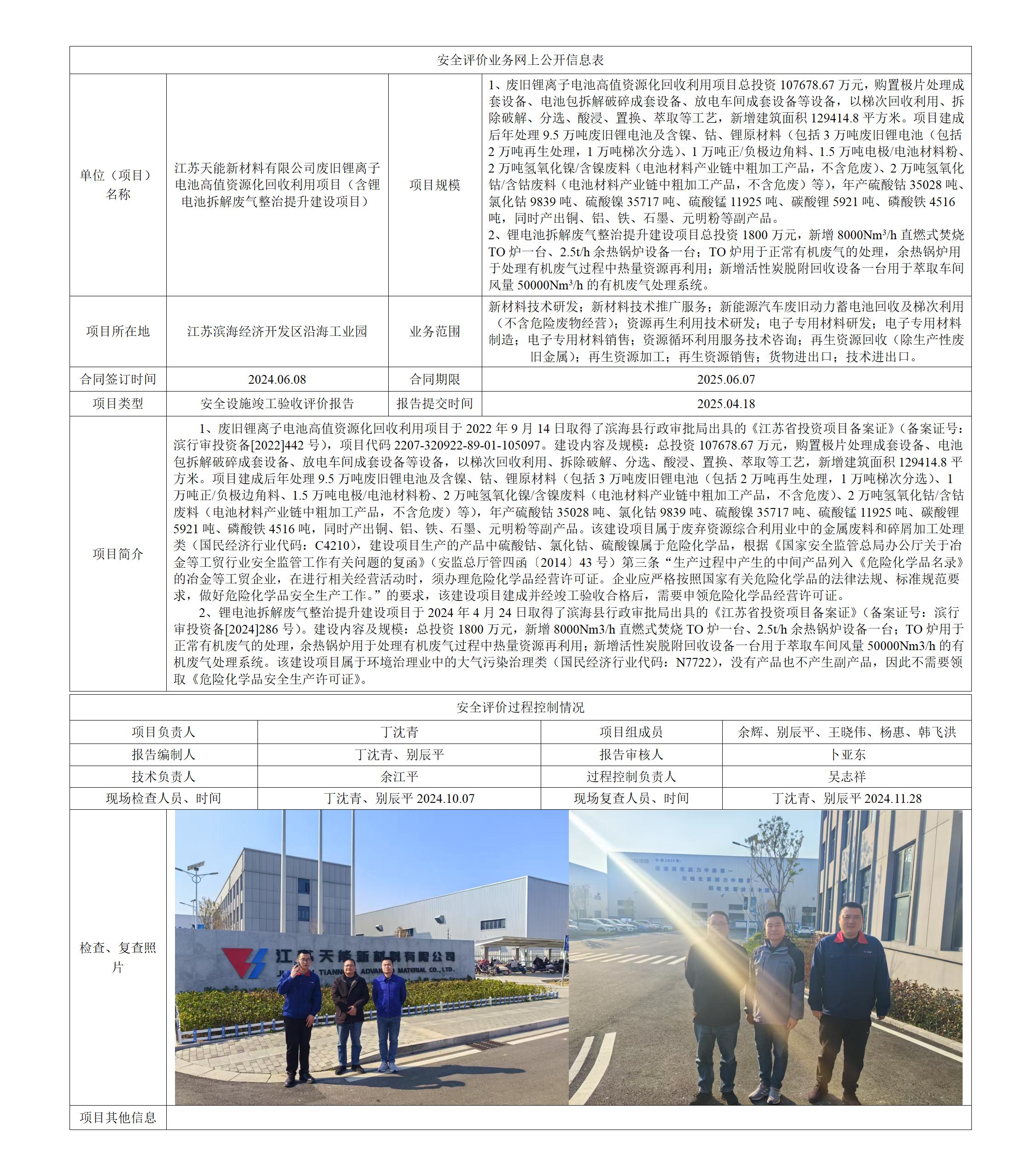江苏天能新材料有限公司废旧锂离子电池高值资源化回收利用项目(含锂电池拆解废气整治提升建设项目)安全设施竣工验收评价报告