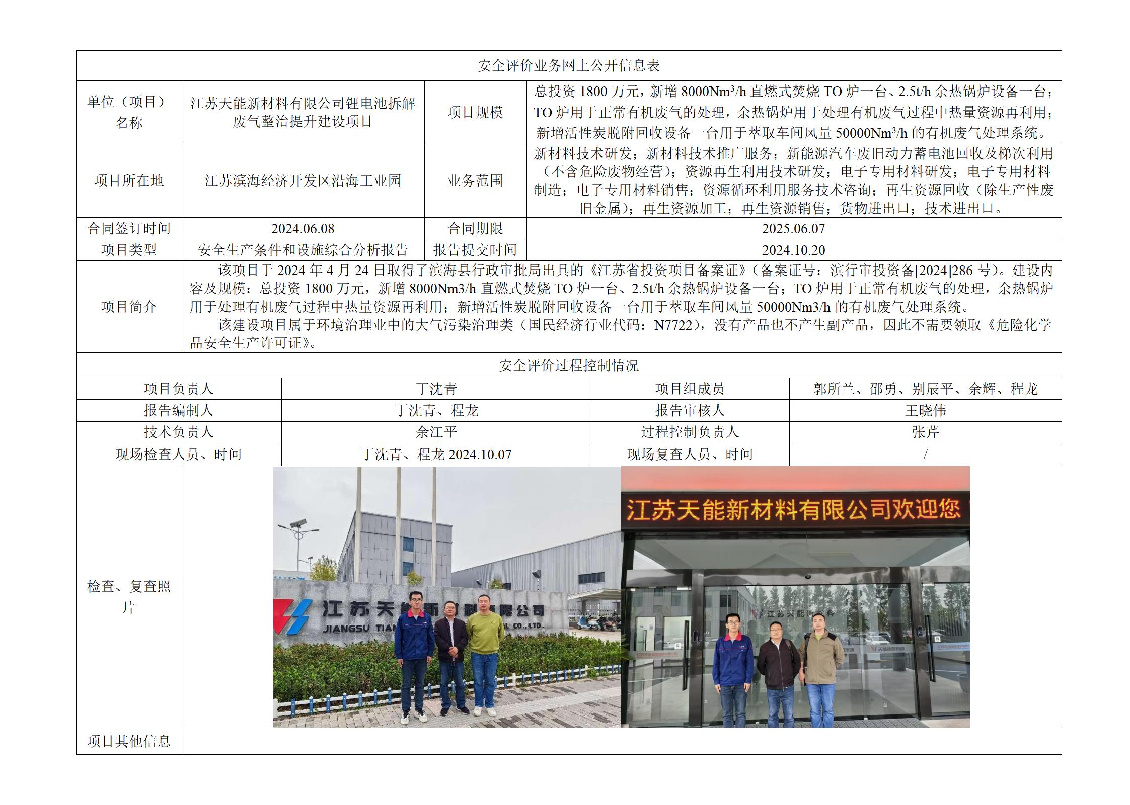 江苏天能新材料有限公司锂电池拆解废气整治提升建设项目安全生产条件和设施综合分析报告