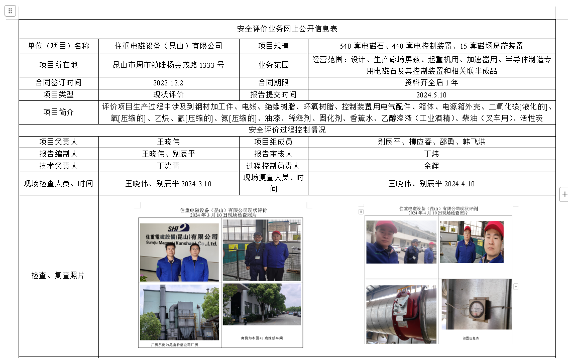 住重电磁设备(昆山)有限公司安全现状评价