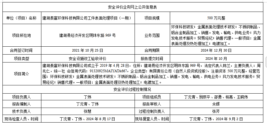 建湖泰富环保科技有限公司工件表面处理项目(一期A段)安全设施竣工验收