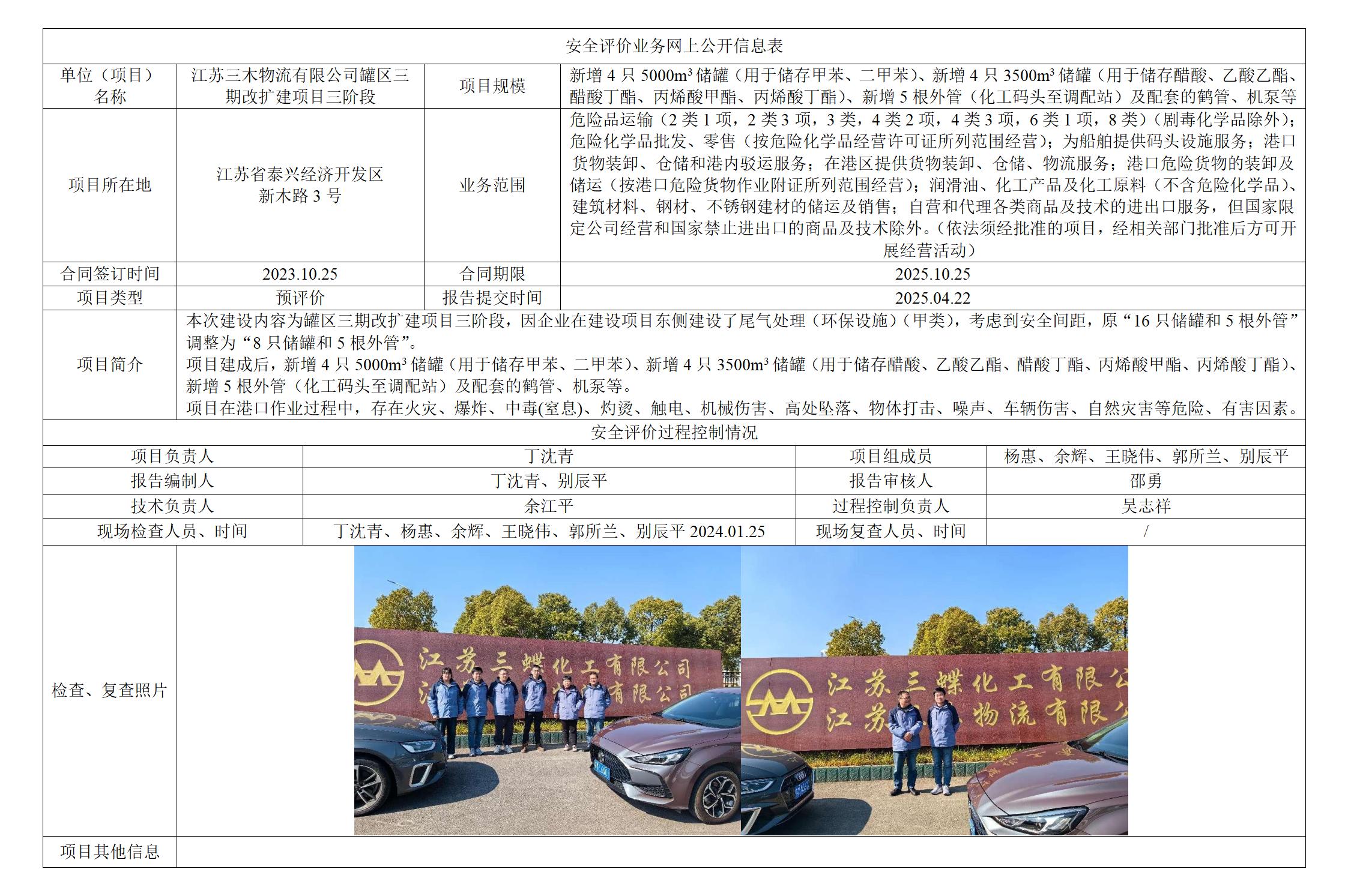 江苏三木物流有限公司罐区三期改扩建项目三阶段
