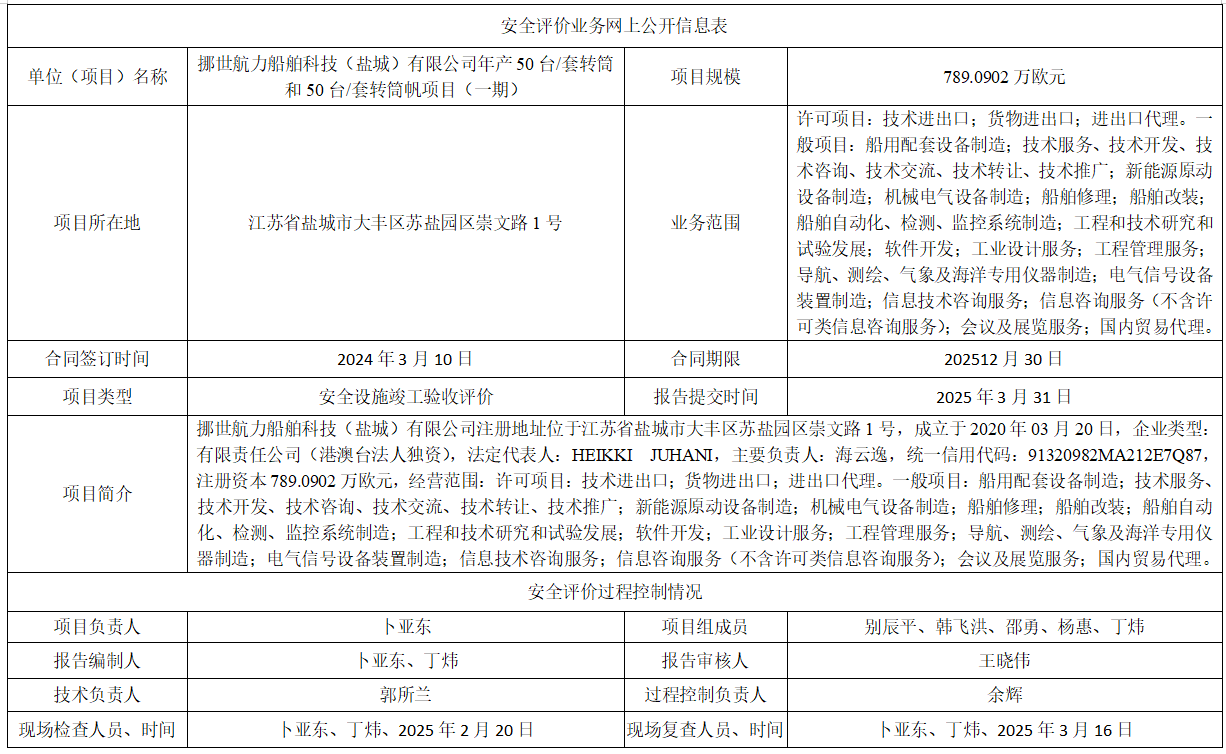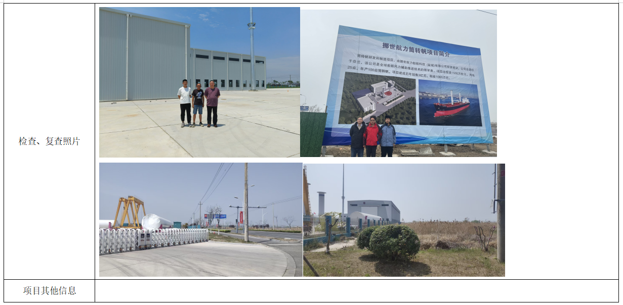 挪世航力船舶科技(盐城)有限公司年产50台/套转筒和50台/套转筒帆项目(一期)验收