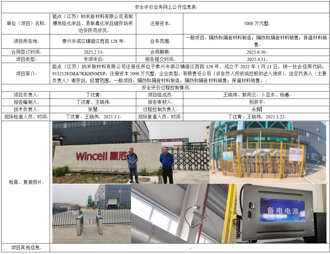 能点(江苏)纳米新材料有限公司易制爆危险化学品、易制毒化学品储存场所治安防范状况