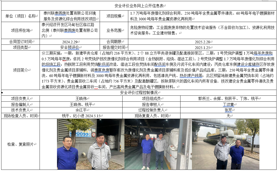 泰州联泰固废处置有限公司环境服务及资源化综合利用技改项目安全预评价报告
