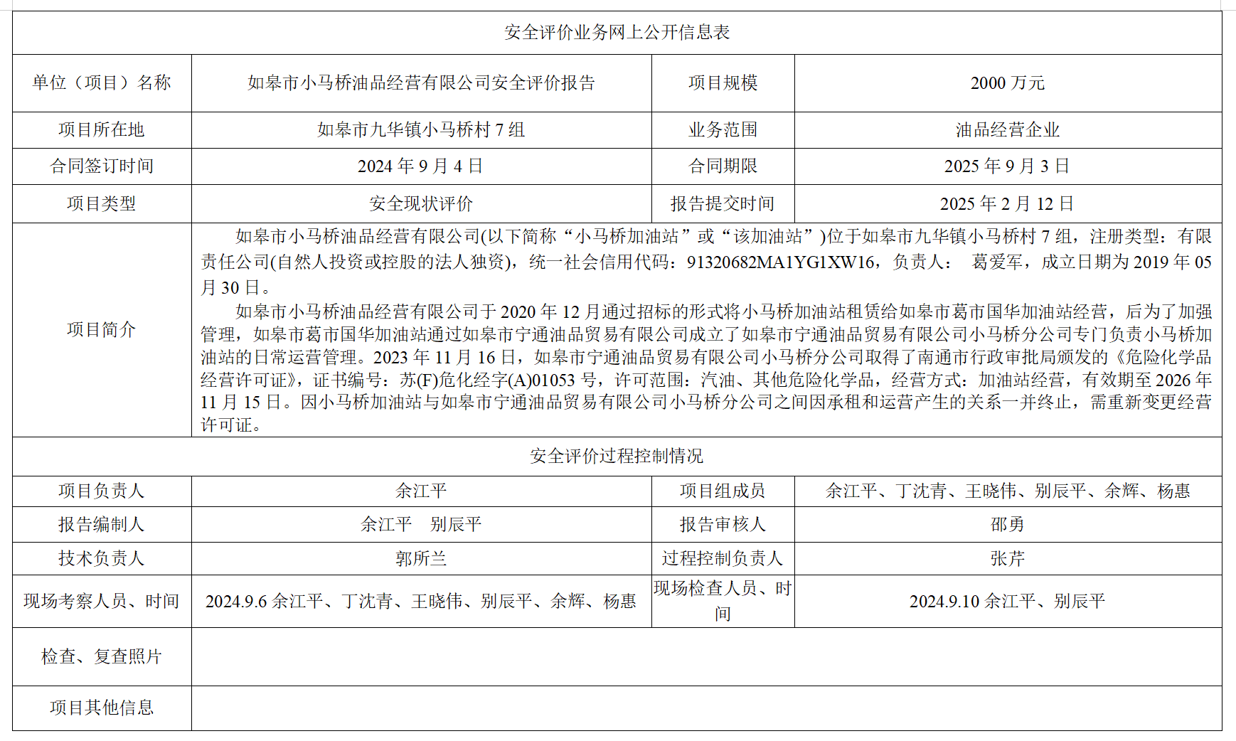 如皋市小马桥油品经营有限公司安全评价报告