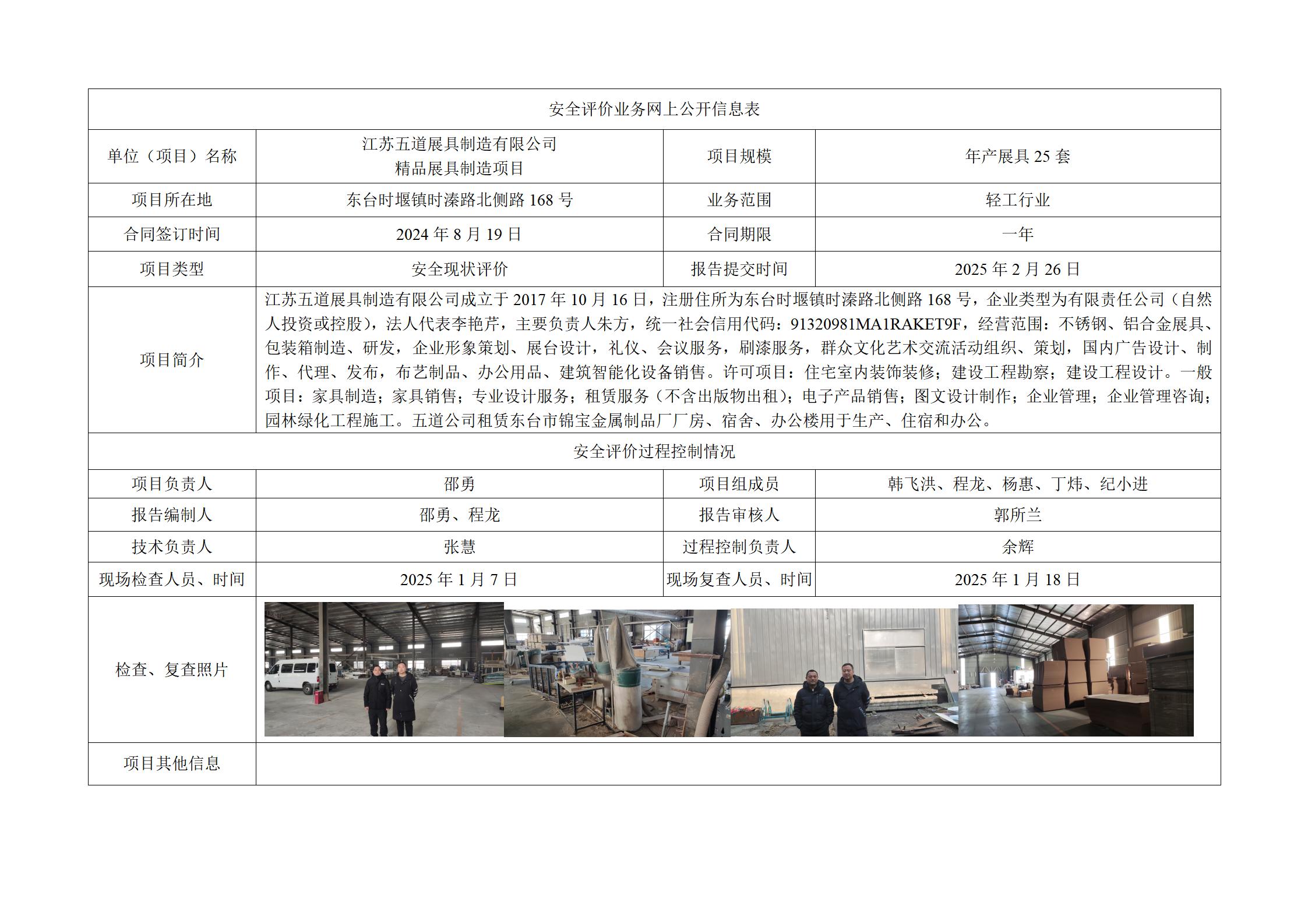 江苏五道展具制造有限公司精品展具制造项目安全现状评价报告