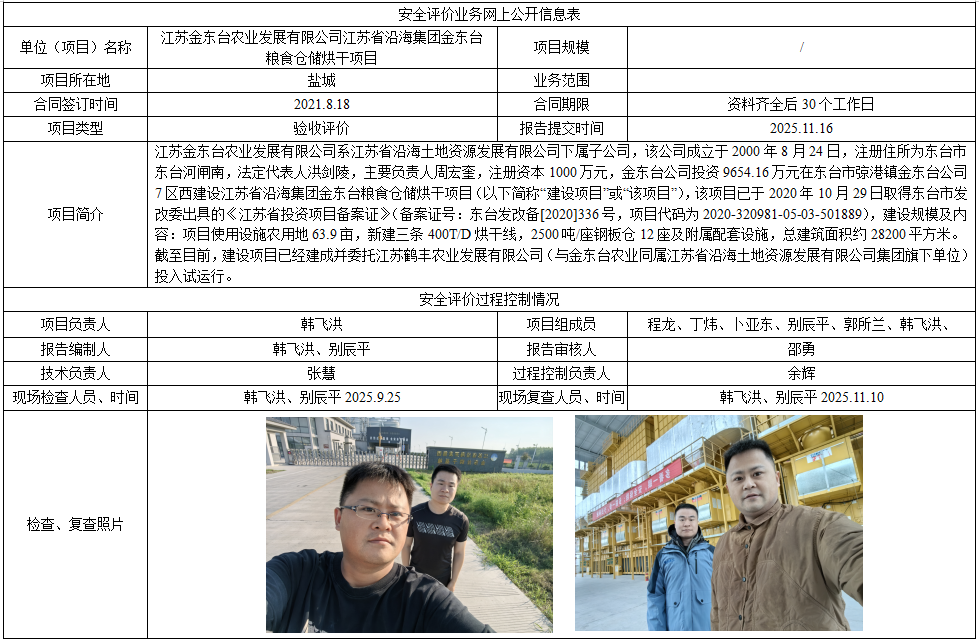 江苏金东台农业发展有限公司江苏省沿海集团金东台粮食仓储烘干项目