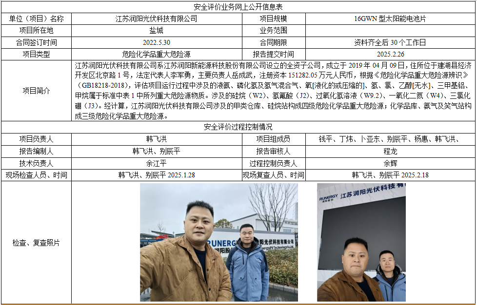 江苏润阳光伏科技有限公司危险化学品重大危险源评估