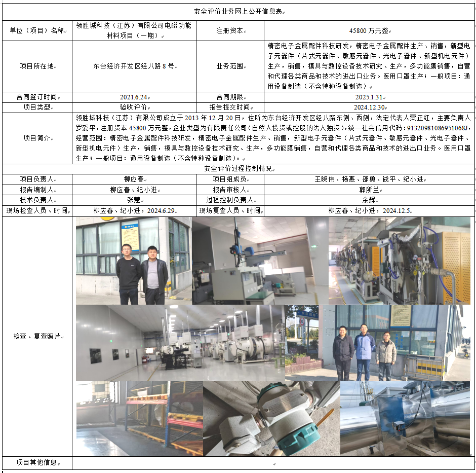 领胜城科技(江苏)有限公司电磁功能材料项目(一期)