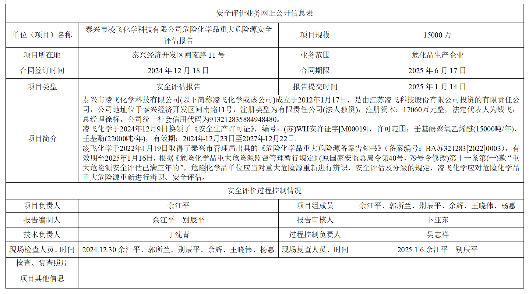 泰兴市凌飞化学科技有限公司(2025年)危险化学品重大危险源安全评估报告