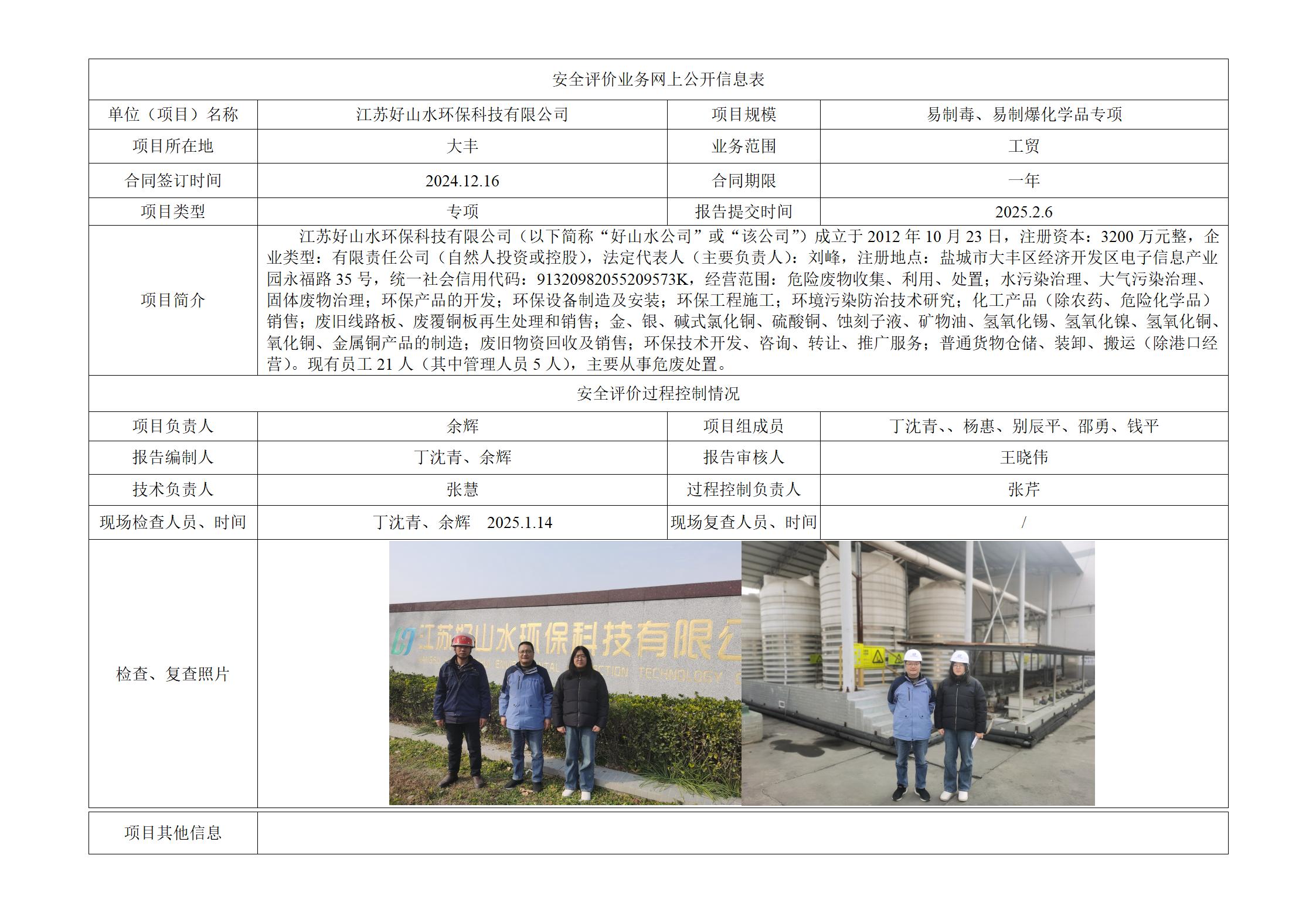 江苏好山水环保科技有限公司 易制爆危险化学品、易制毒化学品储存场所治安防范状况专项安全评价报告
