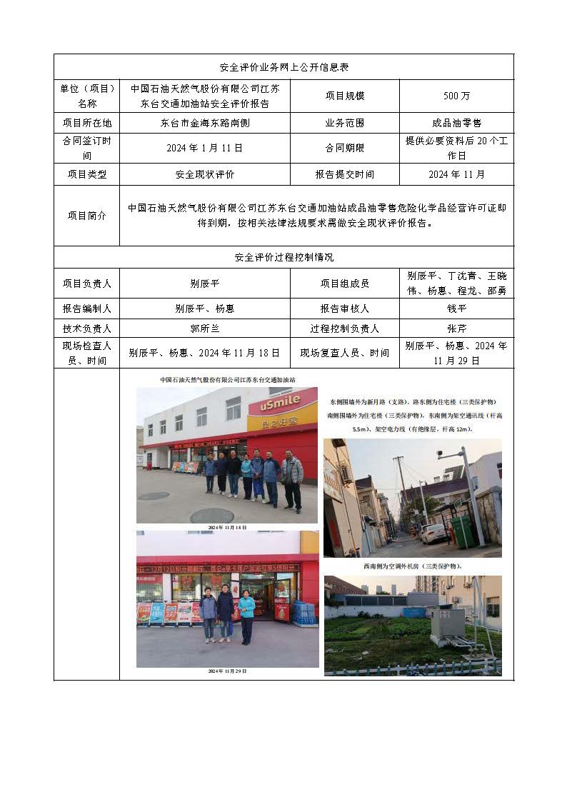 中国石油天然气股份有限公司江苏东台交通加油站安全评价报告2024