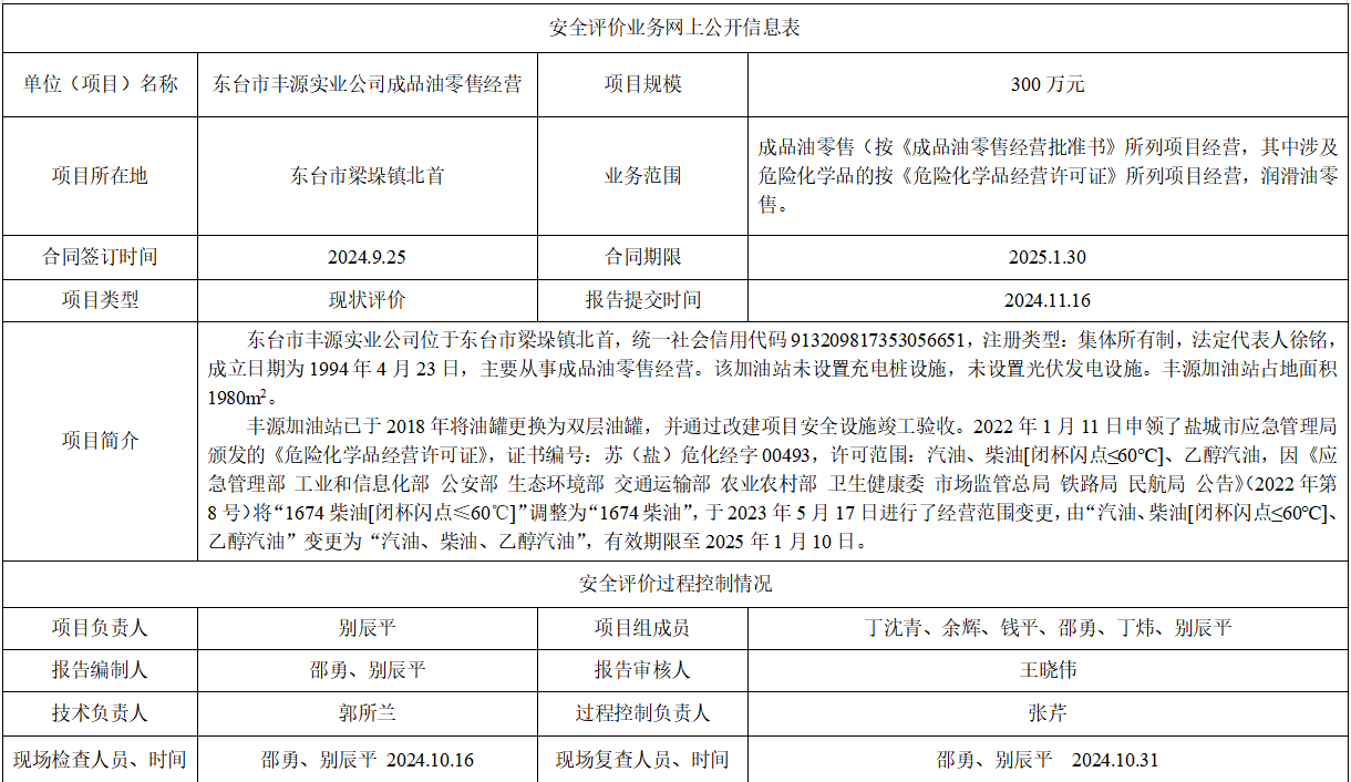 东台市丰源实业公司成品油经营项目安全评价报告