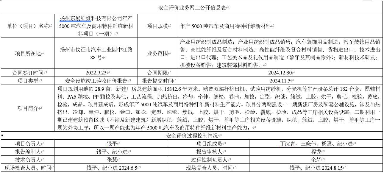 扬州东展纤维科技有限公司年产5000吨汽车及商用特种纤维新材料项目(一期)