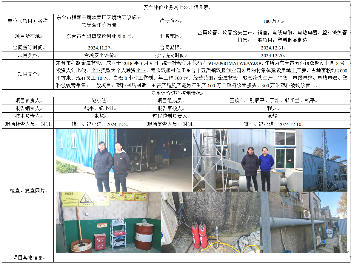东台市程颢金属软管厂环境治理设施专项安全评价报告