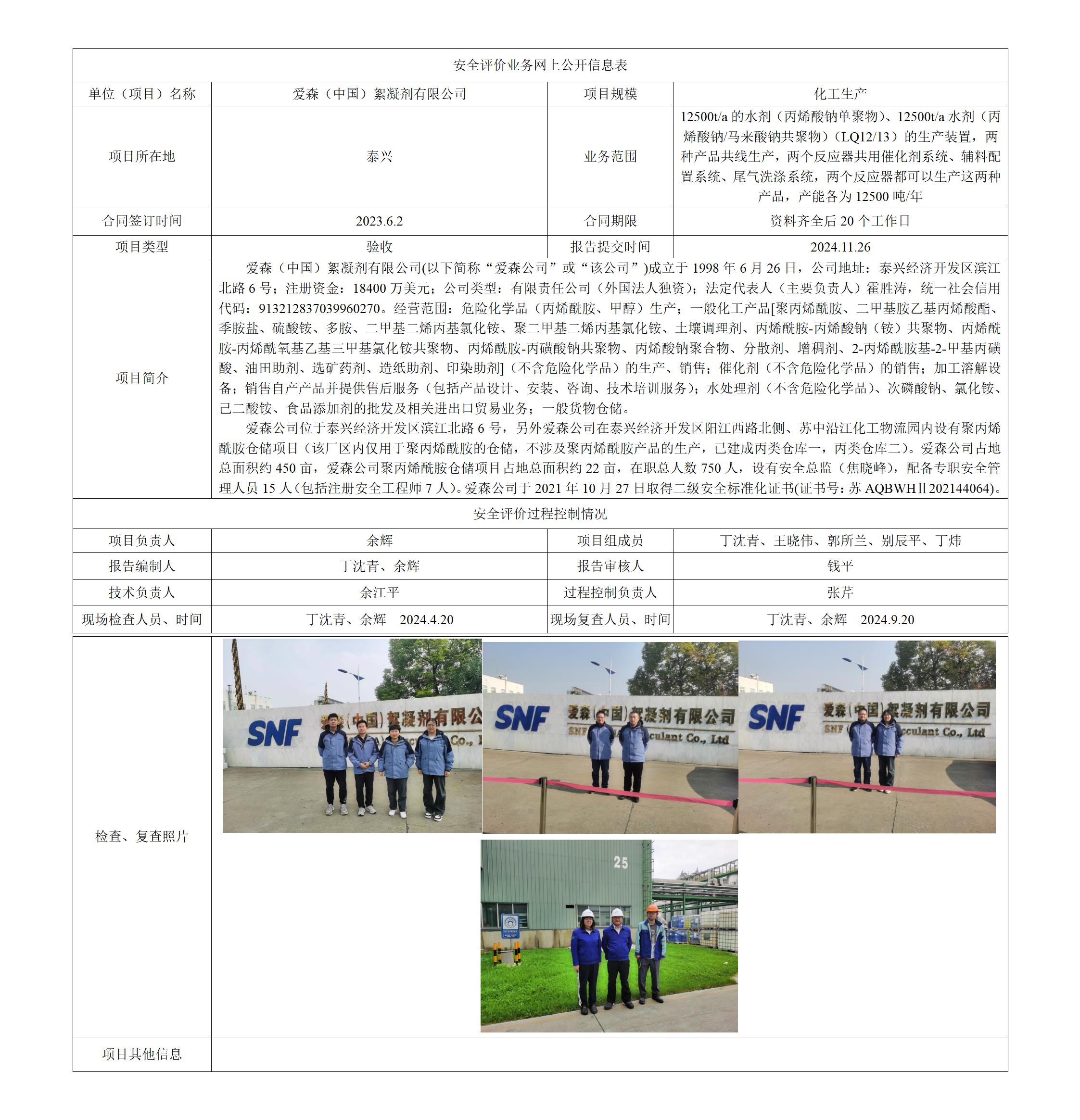 爱森(中国)絮凝剂有限公司 LQ1213安全设施竣工验收