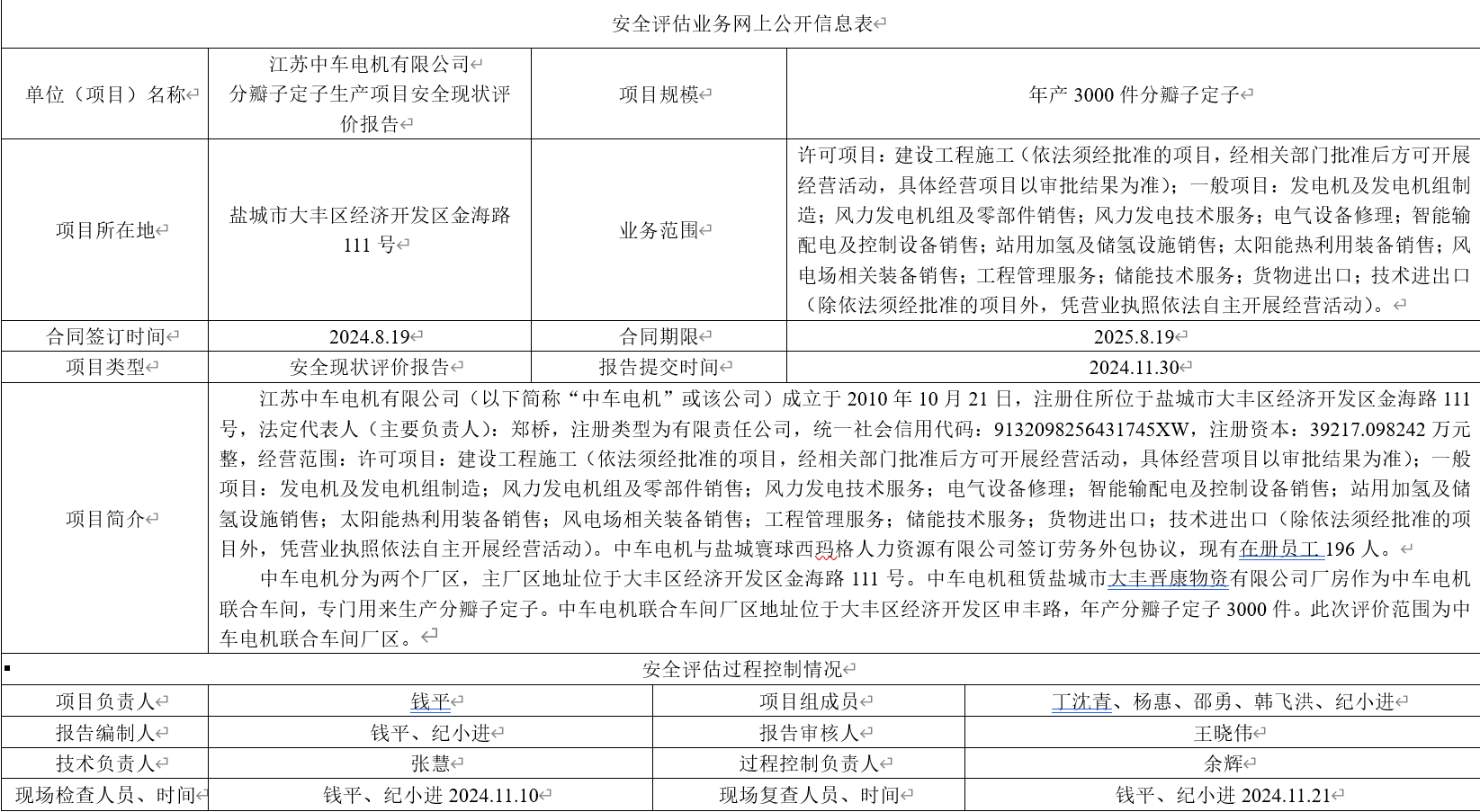 江苏中车电机有限公司 分瓣子定子生产项目安全现状评价报告