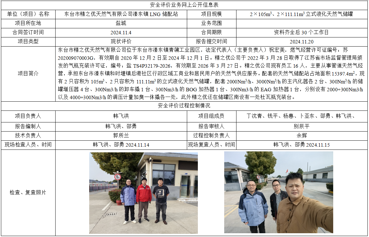 东台市精之优天然气有限公司 溱东镇LNG储配站安全现状评价