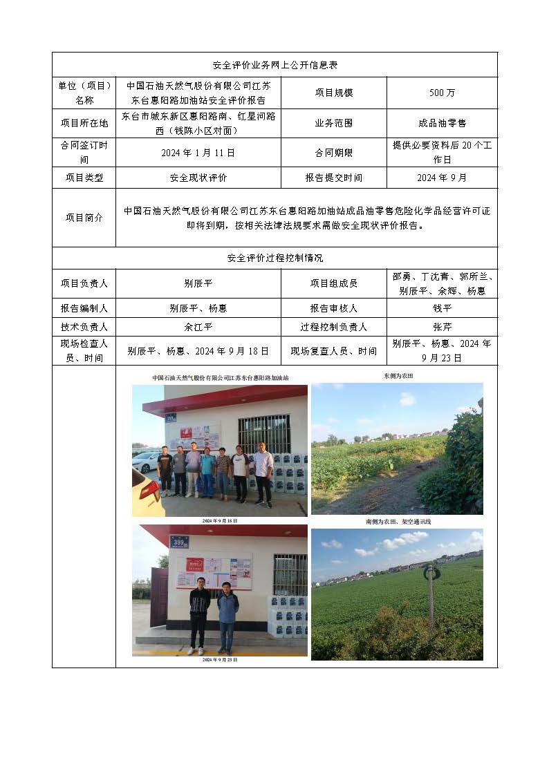 中国石油天然气股份有限公司江苏东台惠阳路加油站安全评价报告