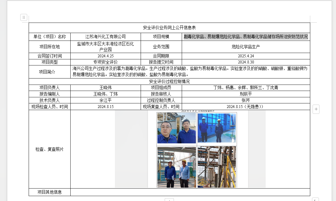 江苏海兴化工有限公司剧毒化学品、易制爆危险化学品、易制毒化学品储存场所治安防范状况