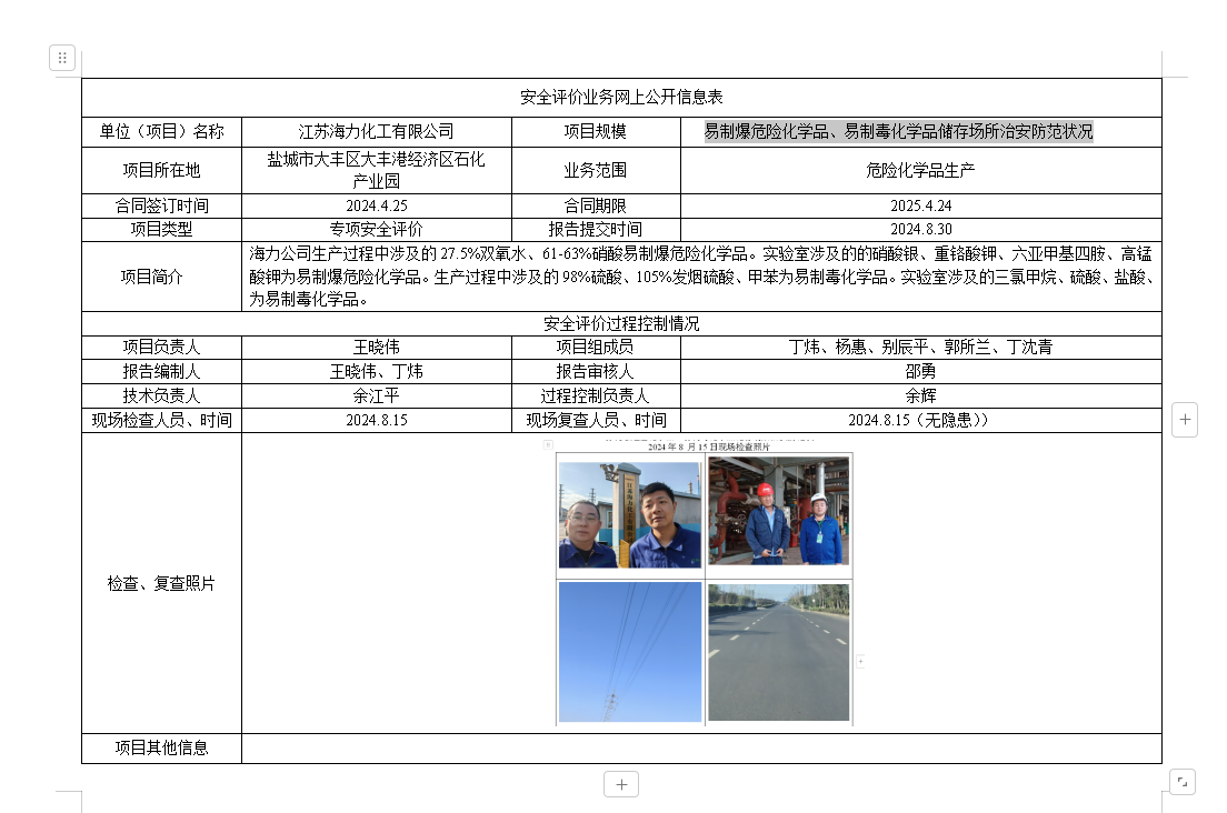 江苏海力化工有限公司易制爆危险化学品、易制毒化学品储存场所治安防范状况