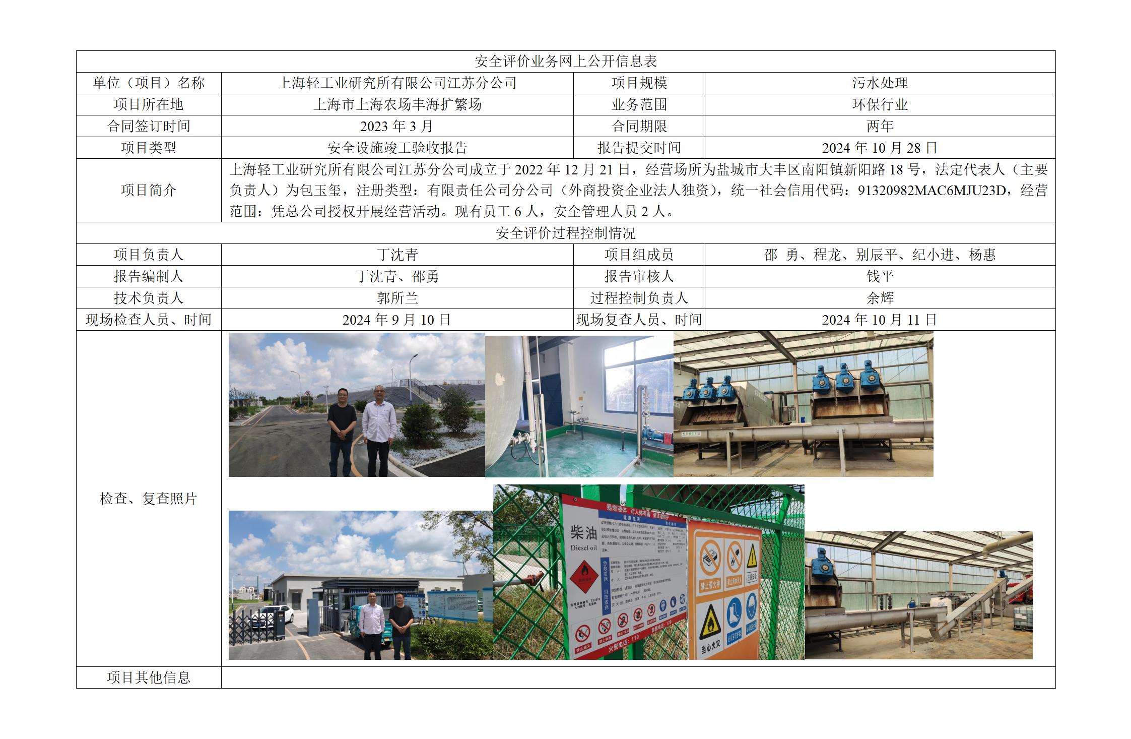上海轻工业研究所有限公司江苏分公司光明农牧科技生猪养殖废水资源化综合利用项目安全设施竣工验收评价报告
