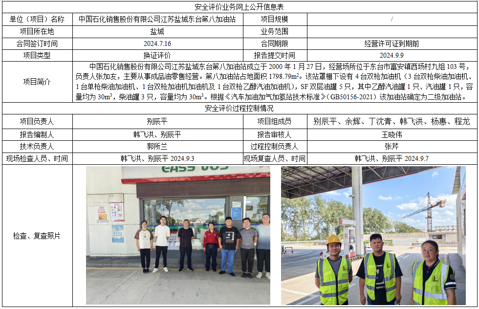 中国石化销售股份有限公司江苏盐城东台第八加油站