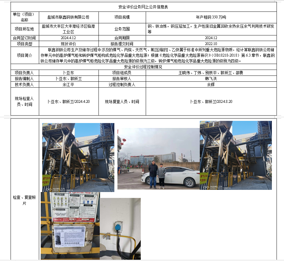 盐城市联鑫钢铁有限公司危险化学品重大危险源评估