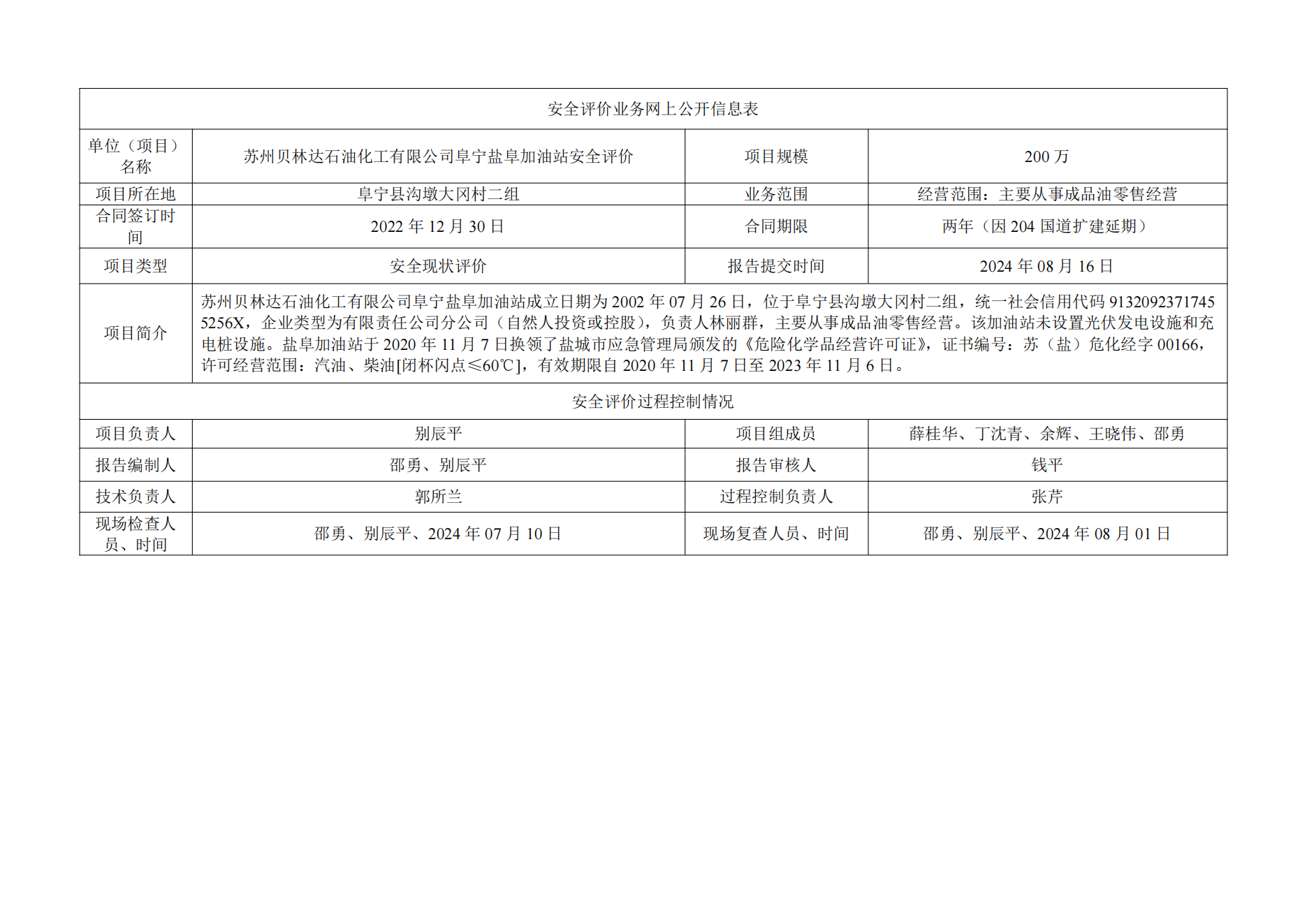 苏州贝林达石油化工有限公司阜宁盐阜加油站安全评价