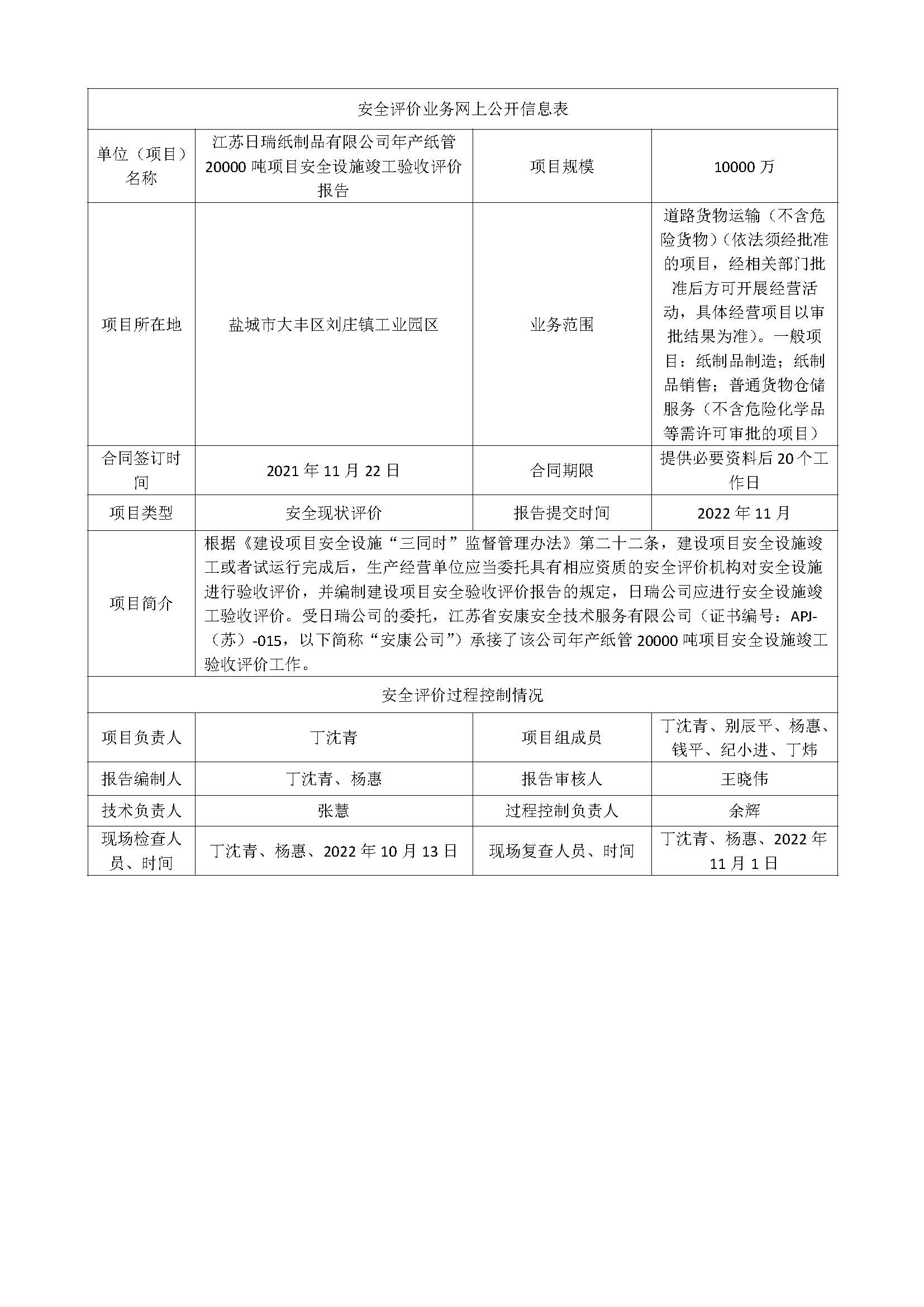 江苏日瑞纸制品有限公司年产纸管20000吨项目安全设施竣工验收评价报告