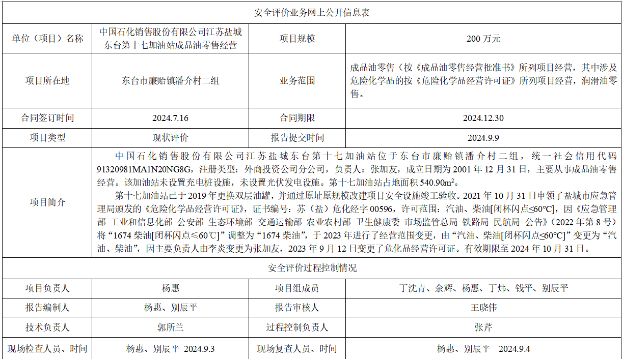 中国石化销售股份有限公司江苏盐城东台第十七加油站成品油零售经营项目