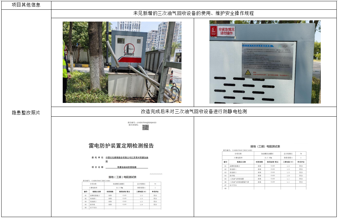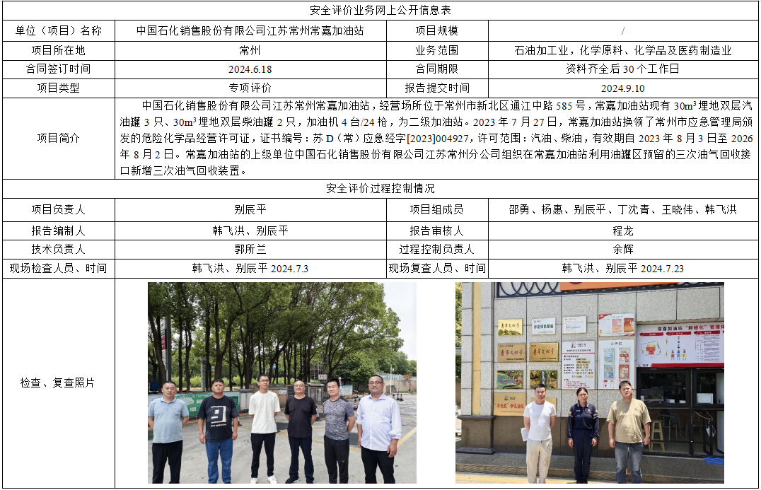 中国石化销售股份有限公司江苏常州常嘉加油站新增三次油气回收装置项目