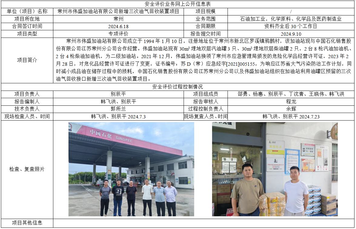 常州市伟盛加油站有限公司新增三次油气回收装置项目