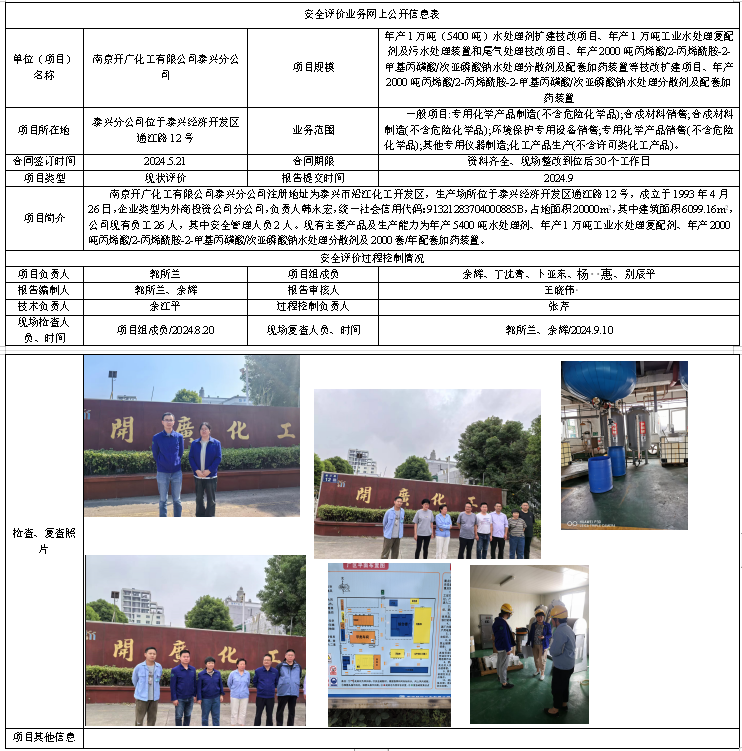 南京开广化工有限公司泰兴分公司现状安全评价