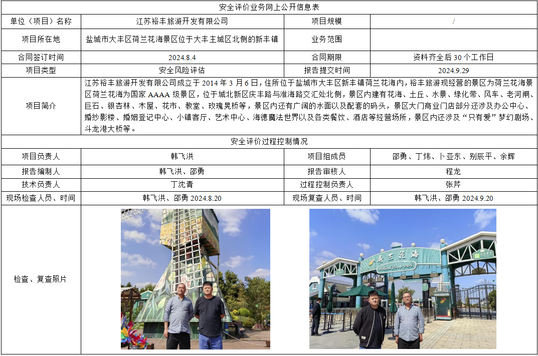 江苏裕丰旅游开发有限公司盐城市大丰区荷兰花海景区安全风险评估报告