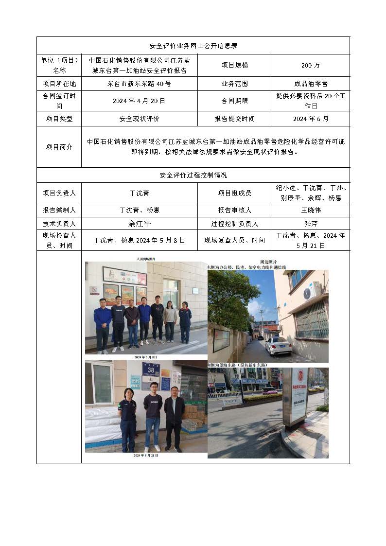 中国石化销售股份有限公司江苏盐城东台第一加油站成品油零售经营2024