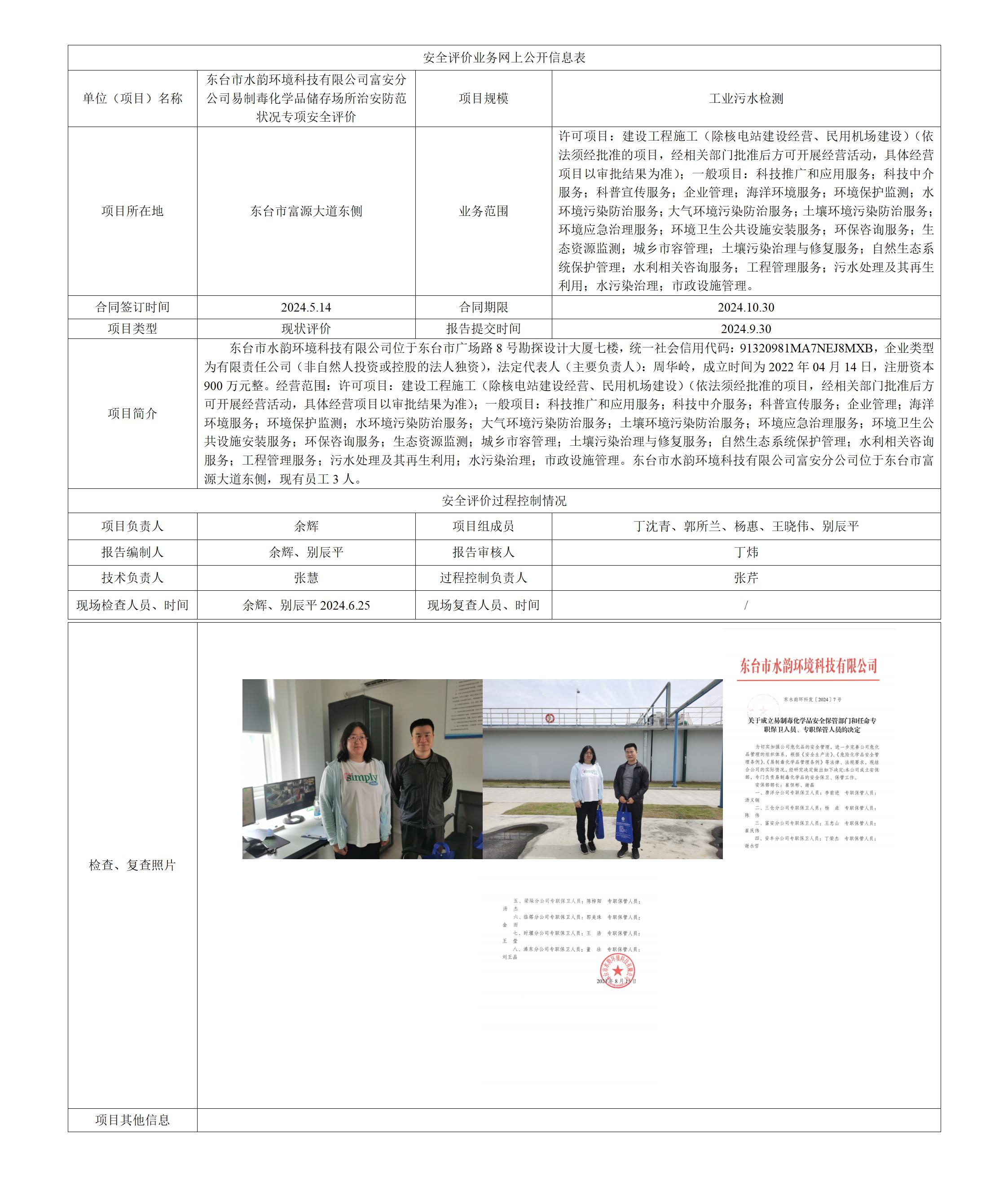 东台市水韵环境科技有限公司富安分公司 易制毒化学品储存场所治安防范状况专项安全评价