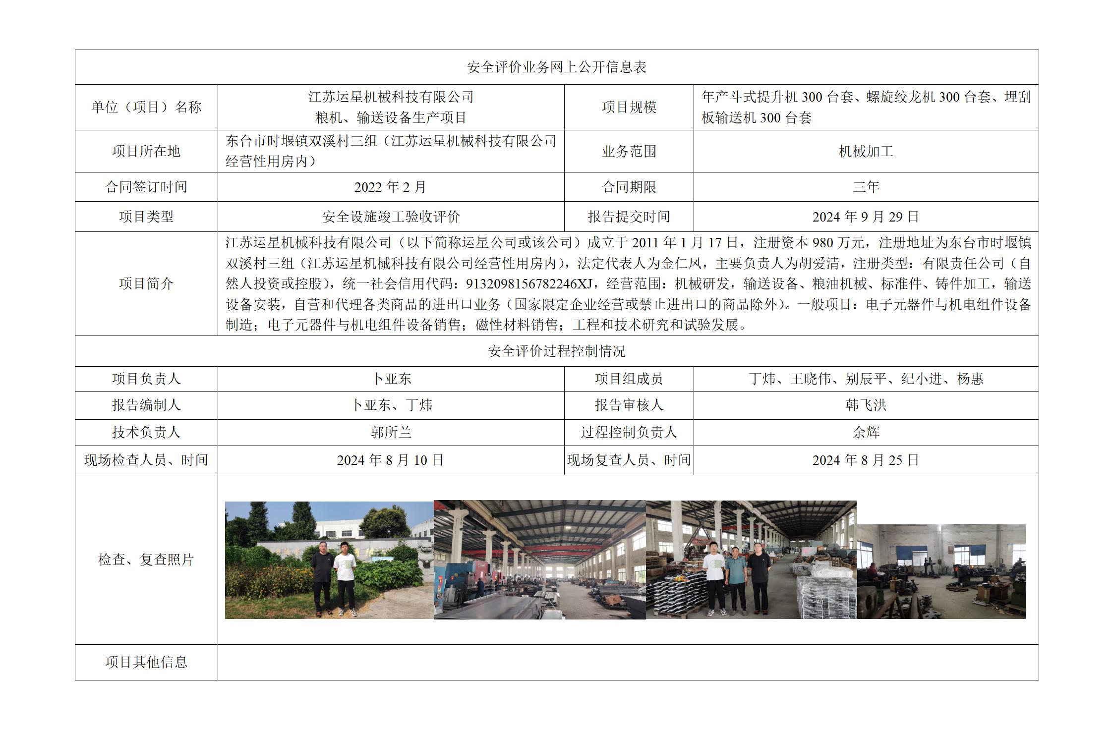 江苏运星机械科技有限公司粮机、输送设备生产项目安全设施竣工验收评价报告