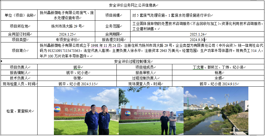 扬州晶新微电子有限公司废气、废水处理设施专项
