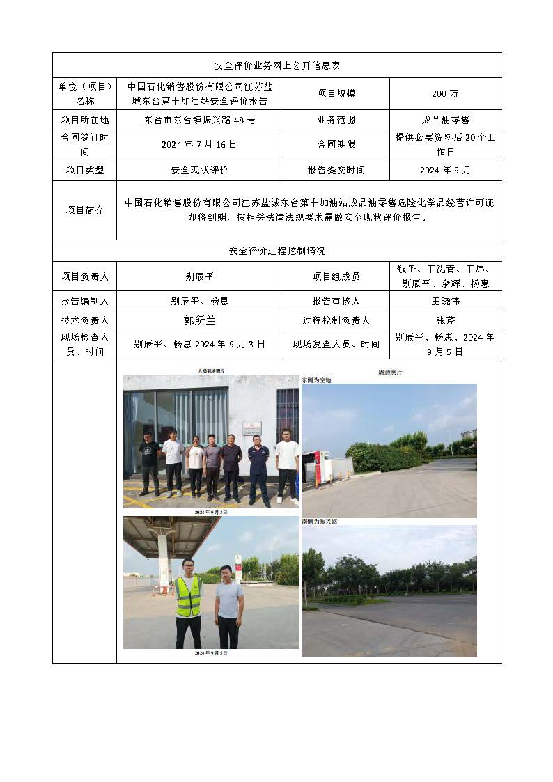 中国石化销售股份有限公司江苏盐城东台第十加油站成品油零售经营评价2024
