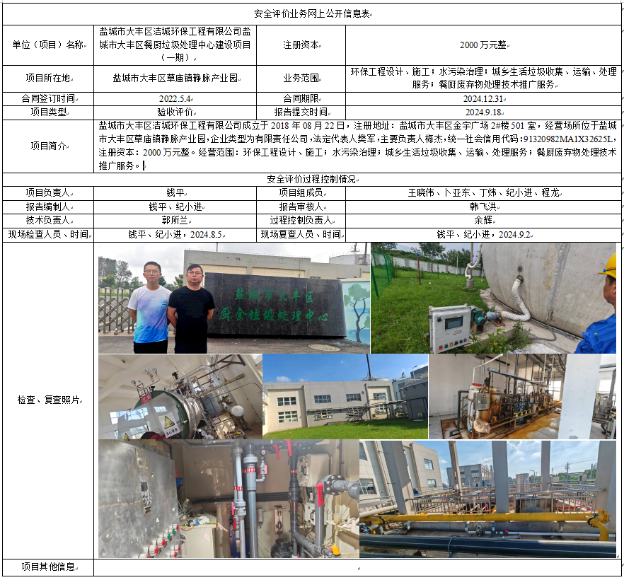 盐城市大丰区洁城环保工程有限公司盐城市大丰区餐厨垃圾处理中心建设项目(一期)