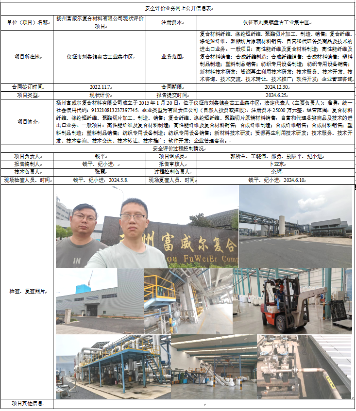 扬州富威尔复合材料有限公司现状评价项目
