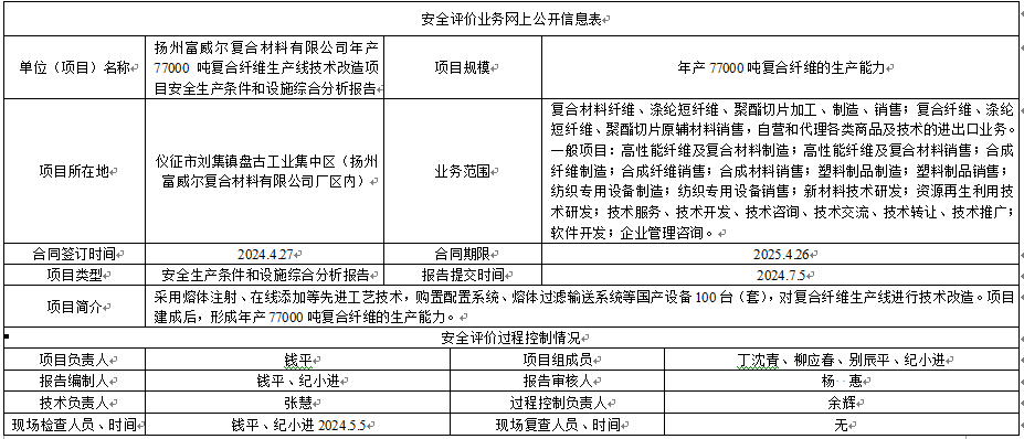 扬州富威尔复合材料有限公司年产77000吨复合纤维生产线技术改造项目安全生产条件和设施综合分析报告
