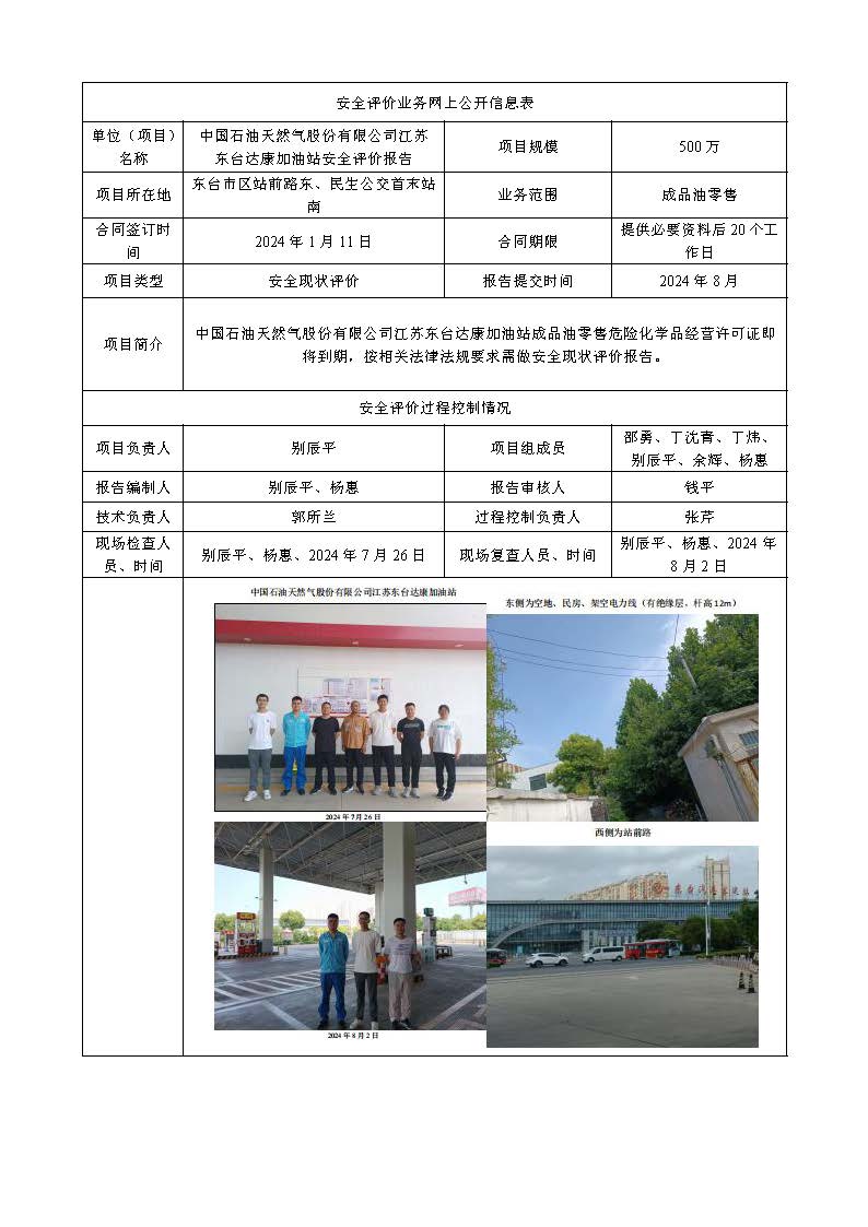 中国石油天然气股份有限公司江苏东台达康加油站安全现状评价