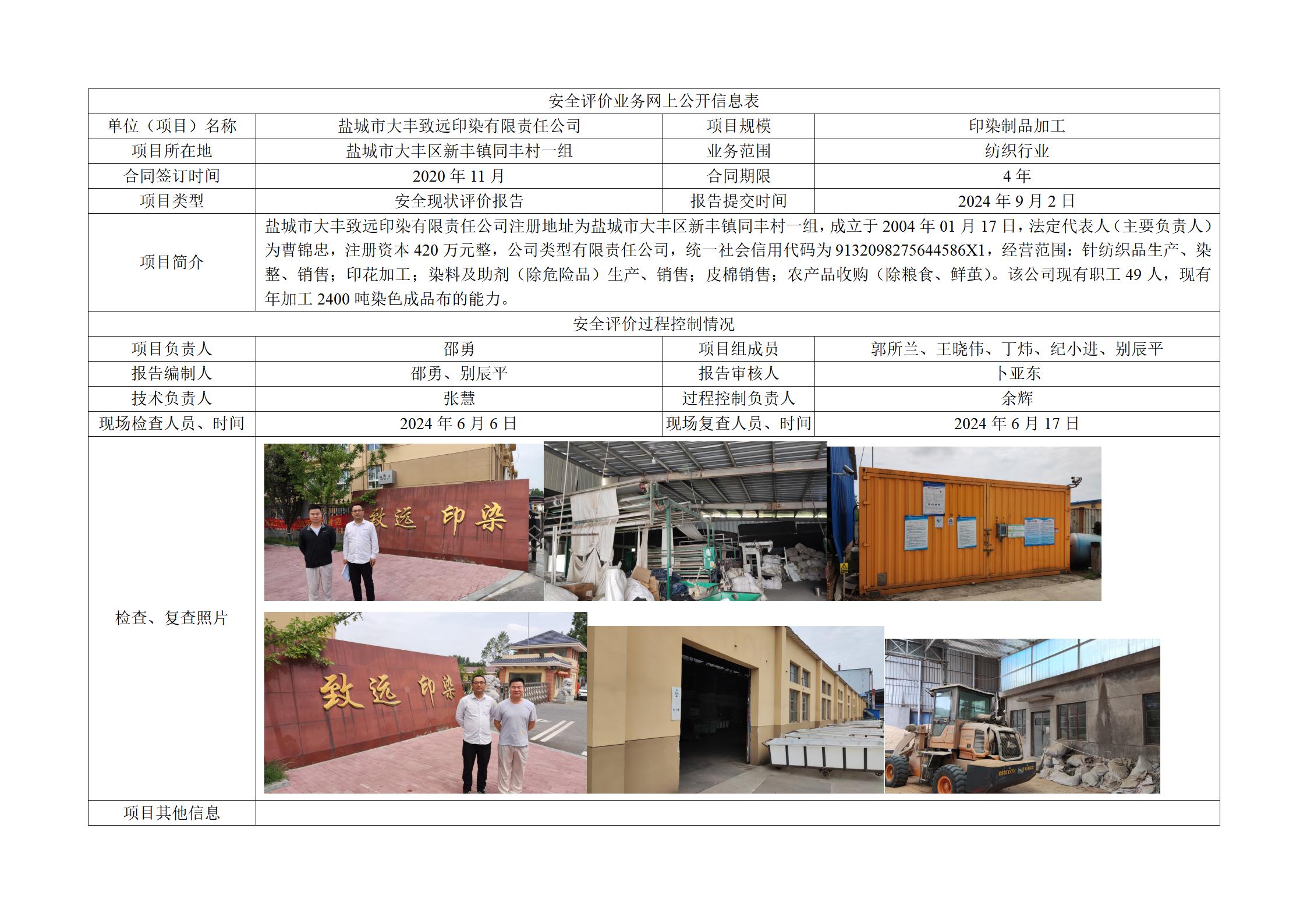 盐城市大丰致远印染有限责任公司年产2400吨印染加工项目安全现状评价报告