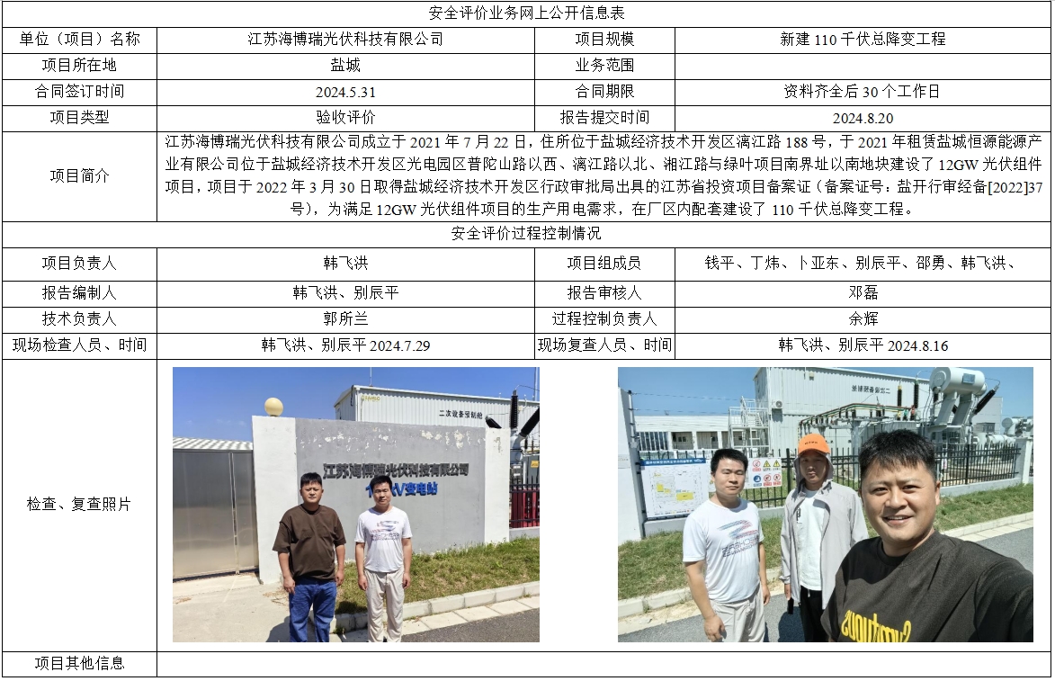 江苏海博瑞光伏科技有限公司新建110千伏总降变工程