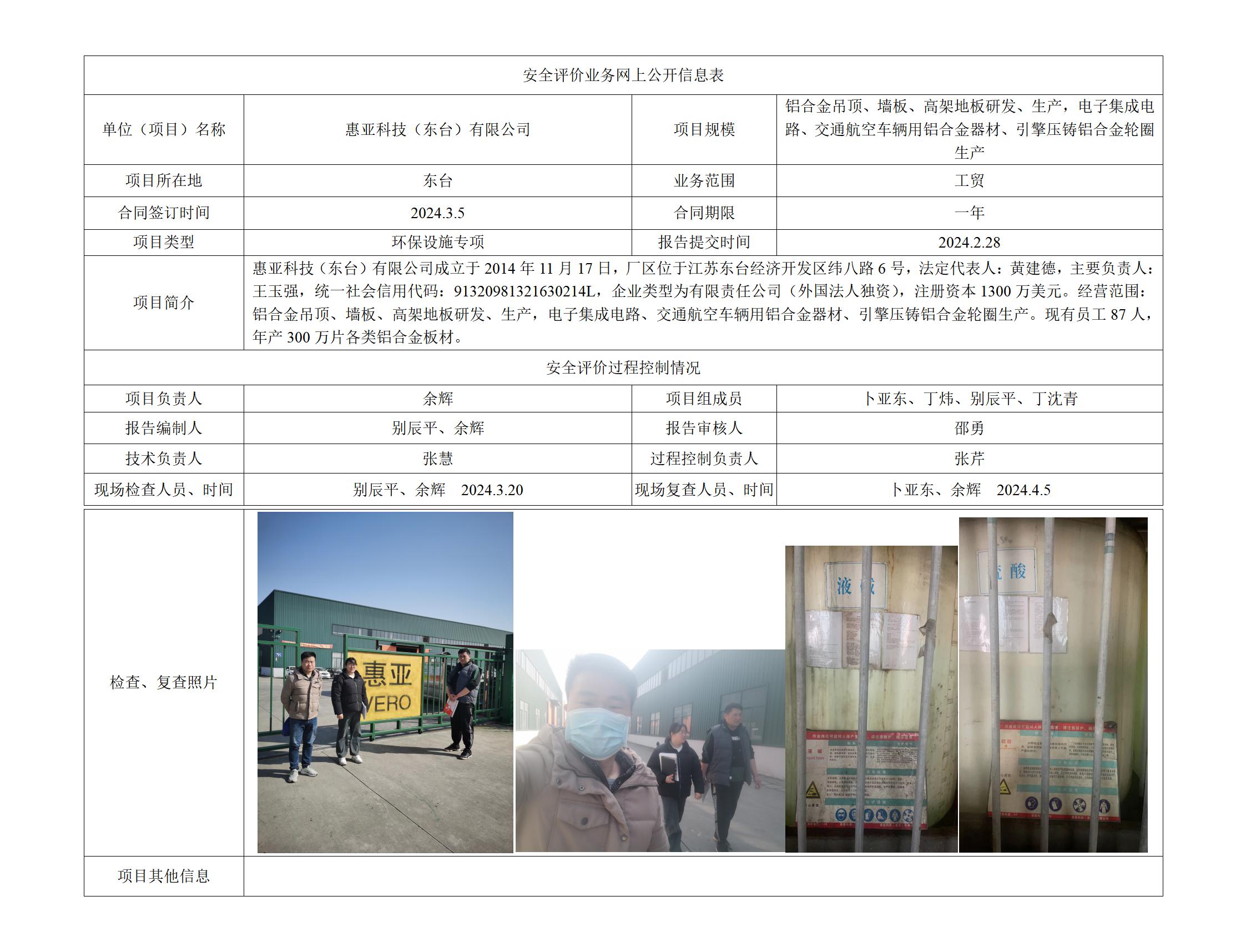 惠亚科技(东台)有限公司 环保设施专项安全评估报告