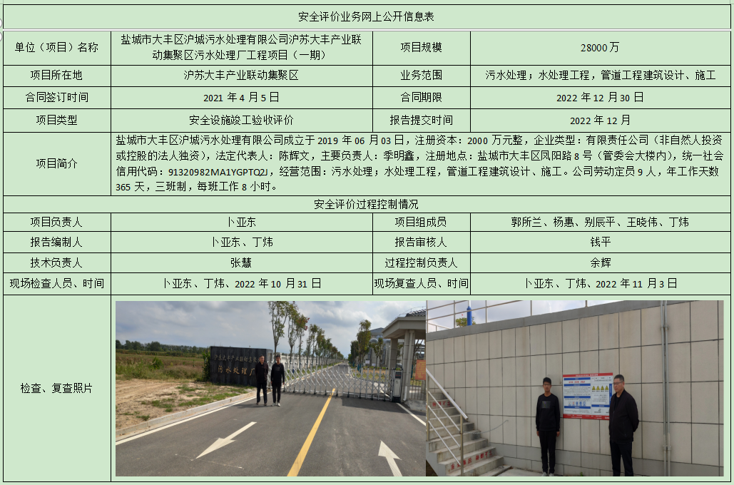 盐城市大丰区沪城污水处理有限公司沪苏大丰产业联动集聚区污水处理厂工程项目(一期)