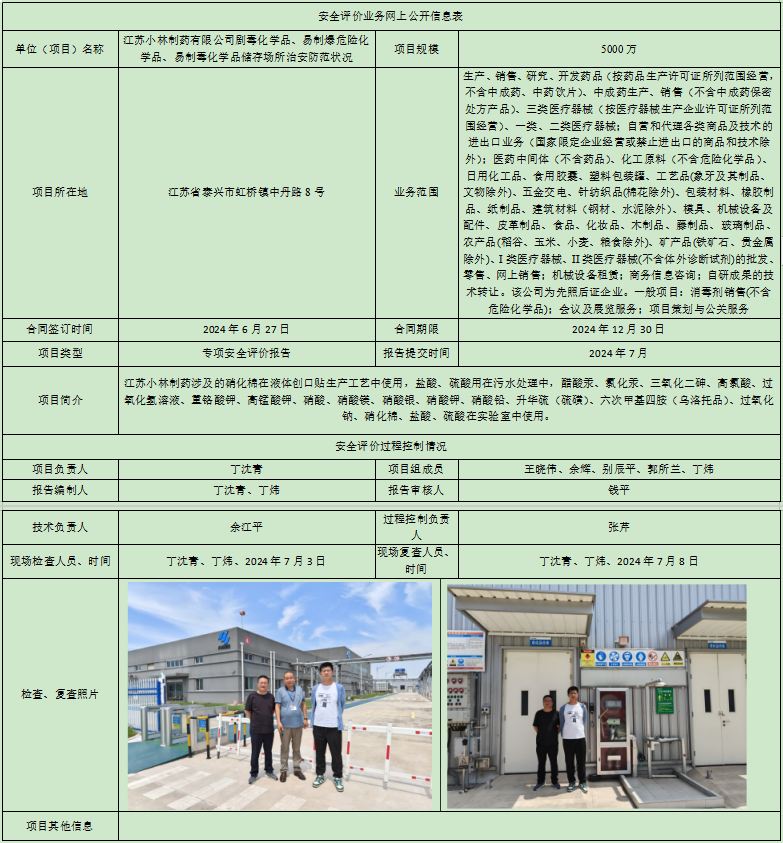 江苏小林制药有限公司剧毒化学品、易制爆危险化学品、易制毒化学品储存场所治安防范状况